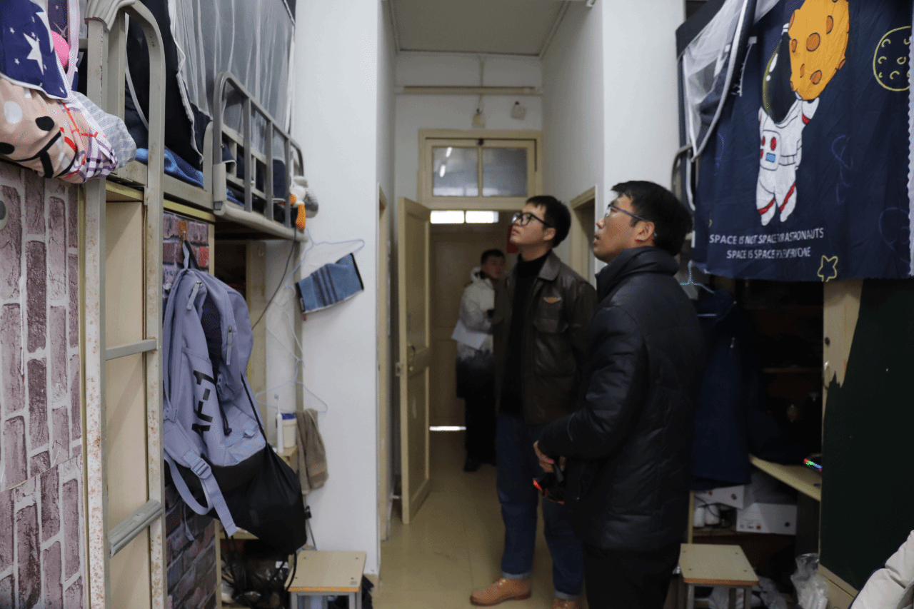 学生宿舍历来是高校消防安全的重中之重,为了进一步杜绝学生私自拉接电线、使用电炉、电暖器、热得快等大功率电器,违规采用电热毯、电加热器取暖,违规使用蜡烛、酒精炉等明火器具,党委副书记周翔带领辅导员李瑞、颜超龙和主要学生干部,对学院的学生宿舍逐一展开检查,发现问题要求当场整改,并就学生关心的学习、生活等问题进行了答疑和记录。主要学生干部为每个宿舍贴上安全宣传海报,并认真进行了宣传讲解。