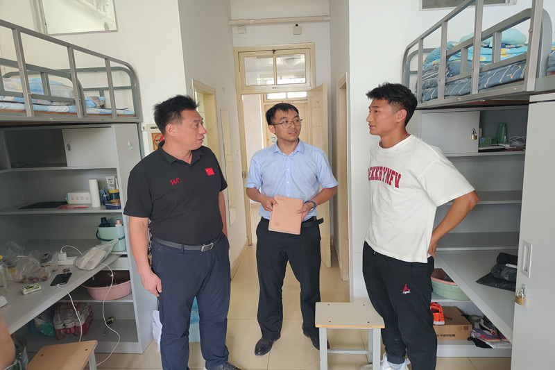 走访中,学院领导逐一查看新生宿舍,在学生宿舍内,学院领导与新生进行了愉快的交谈,了解新生的住宿和生活情况,并且关心地询问他们的兴趣爱好,家庭基本情况以及新生们到校后的感受,耐心听取学生们的反馈,对于学生所提出的问题现场给予了回复。陆林召勉励新生要珍惜大学时光,努力学习,同学间要互相交流及时沟通。周翔鼓励新生尽快适应大学生活,遇到困难及时联系老师,以良好的状态迎接大学生活。