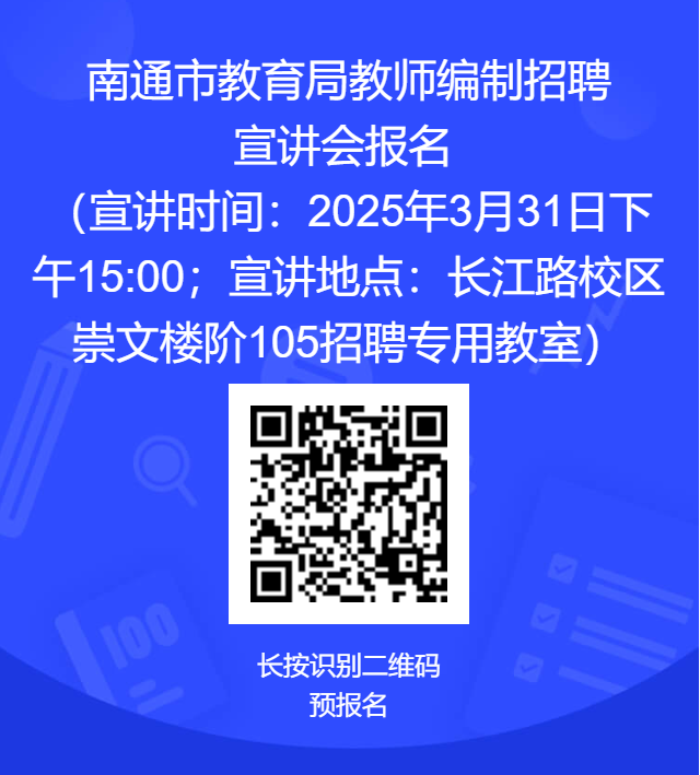 宣讲会 | 2025年春季南通市教育局部分直属学校暨部分市属事业单位委托公开招聘教师公告