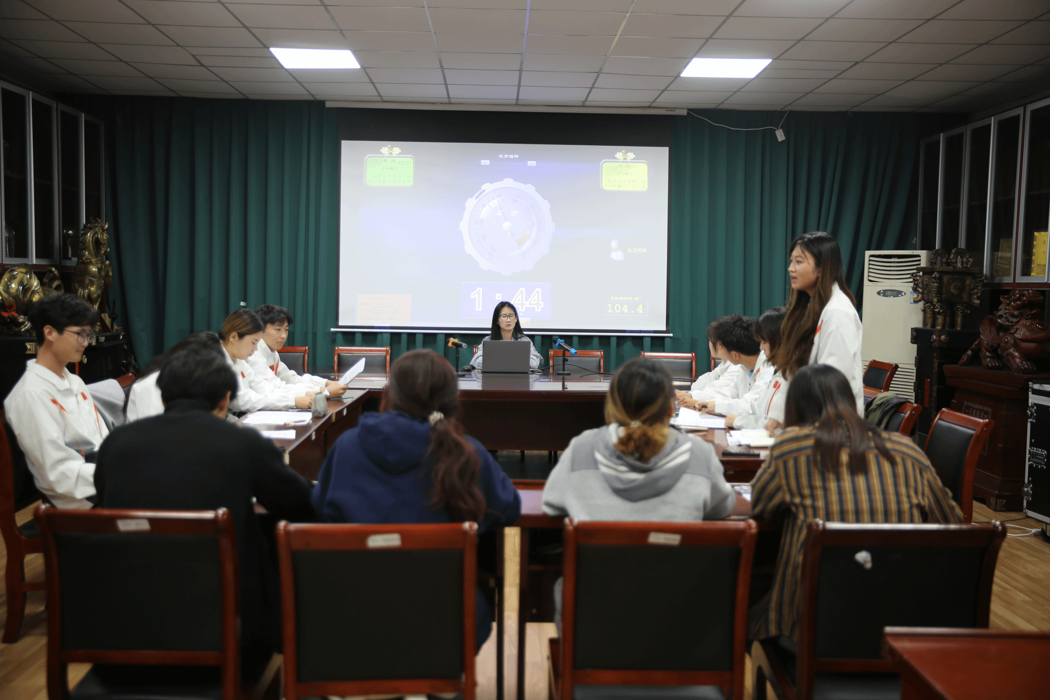 初赛阶段,参赛队伍围绕网络安全和反诈防骗辩题,展开激烈交锋。辩手们引经据典,逻辑严密,为比赛拉开了精彩序幕。复赛中,“宿舍安全管理,应依赖定期检查制度还是靠学生的自觉自律”这一辩题引发了辩手们热烈的讨论。正反双方辩手各执一词,以详实的数据和案例为 “武器”,展开了一场逻辑与口才的精彩较量。经过多轮比拼,2支优秀队伍脱颖而出,晋级决赛。