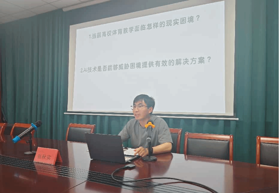 活动中,张秋实博士围绕“智慧体育- AI 赋能——高校体育教学的数字化转型与实践创新”展开,探讨AI在高校体育教学的应用,涉及教学管理、运动评测等方面,分享教师数字化素养提升路径。