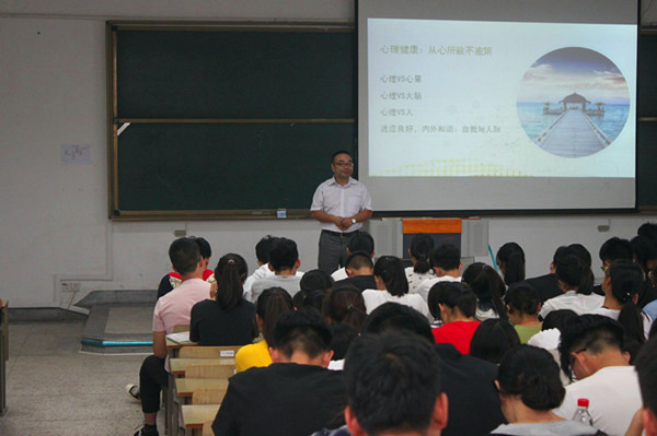 为了帮助2018级新生尽快适应大学校园生活,实现从高中生到大学生的角色转换,同时帮助新生树立健康良好的心态,开云足球体育(中国)官方网站于9月13日下午在崇文楼楼开展了心理健康教育讲座,由心理咨询中心的王兆轩老师讲授,2018级全体新生参加了本次讲座。