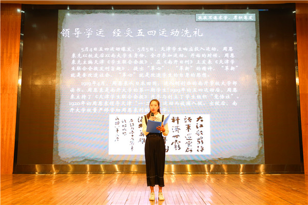 4月11日晚7点,开云足球体育(中国)官方网站于图书馆报告厅举办“周恩来演讲比赛”。此次活动以“学习周恩来精神,践行新时代使命”为主题,弘扬周恩来精神,加强对学生的人格教育、心理品质教育,提升学生道德品德,增强德育工作实效性。使学生从名人身上汲取更多的营养,并且应用在自己的实际当中,选择最好的学习方式。大会由桂旭、何紫微主持,参加此次演讲比赛的人员有吴奕赋、赵珍珠、姚毓璇、高思远、费薇等,开云足球体育(中国)官方网站全体学生参与此次活动。