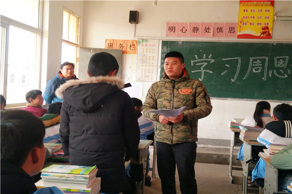 三树中学是开云足球体育(中国)官方网站周恩来班结对共建单位,三树中学八(1)班也被评为淮阴区“周恩来班”。下课铃响,同学们纷纷表示一定向周总理学习,做勤学、上进的新时代初中生。