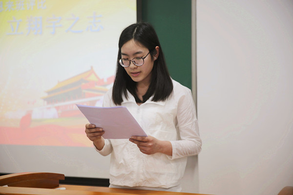 评比会上,每个候选班级代表按照抽签顺序依次上台展示,并围绕“恩来精神”的学习传播情况、班风学风的建设情况、公益活动的开展情况,以及未来工作计划等方面分别进行了深入介绍。评比会持续了一个多小时,气氛活跃而紧张。