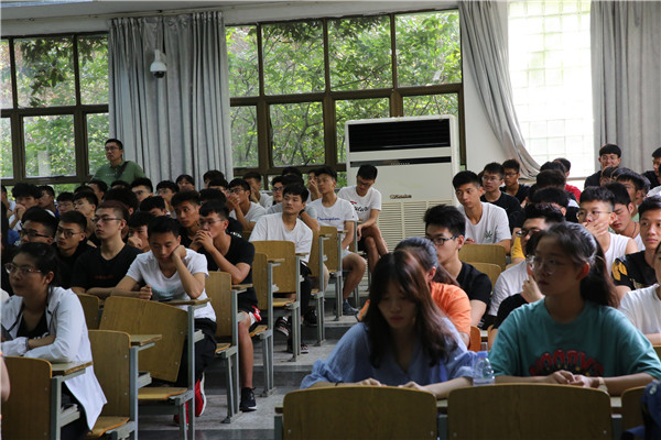 王兆轩老师以 “适应新变化,拥抱新生活”为主题,通过播放幽默的卡通对话视频向新生提出问题“为什么要考大学?”,围绕“前提是理解、接纳和尊重自己的个性”“重点是为自己的选择负责”和“方法是想办法决定心情,理智胜过情感”这三个方面进行由浅入深的讲解。王兆轩提出,在成长过程中要学会享受孤独,上大学是为了遇见更好的自己,为了生命更丰富。最后,他以一段寓意深刻的视频做总结,教育新生——不要想太多。