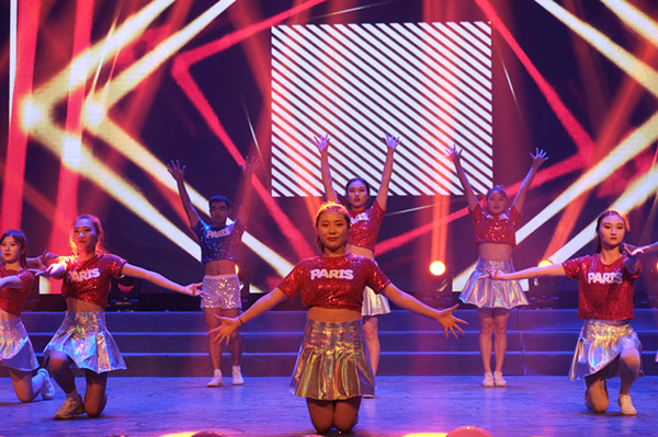 代表我校参加2019年体育舞蹈锦标赛获得12金的14名同学带来了精彩的开场舞和《黄河》表演,力量与激情、青春与活力在他们身上演绎得精彩绝伦。采用拉丁、斗牛等舞蹈形式演绎的《黄河》更是将黄河的激流和澎湃、壮观与伟大表现到极致,充分展现作为青年学生浸洒爱国热血、奋力追梦崭新时代的豪言壮志!