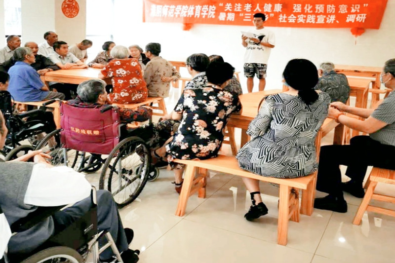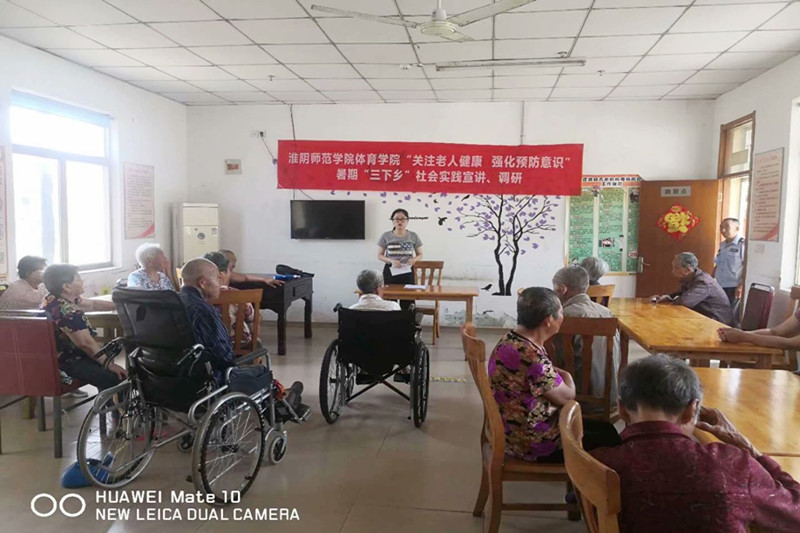 新冠肺炎发生后,老年健康问题又一次成为社会关注的焦点。为贯彻落实党的十九大精神,扎实开展“不忘初心、牢记使命”主题教育,增强老人自我保护、关爱生命、关注健康的意识,积极完善老年健康服务,提高老年人健康水平。淮阴师范学院开云足球体育(中国)官方网站走进多家敬老院和社区举办主题健康教育暑期“三下乡“社会实践活动。