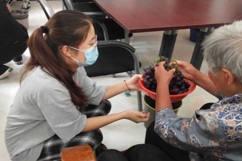 徐州邳州组的胡轩铭、史信两位同学走进邳州市东博老年公寓,为老人讲解健康知识及适宜老人的锻炼方法,并为老人带来了水果等营养品,帮助老师树立预防意识。