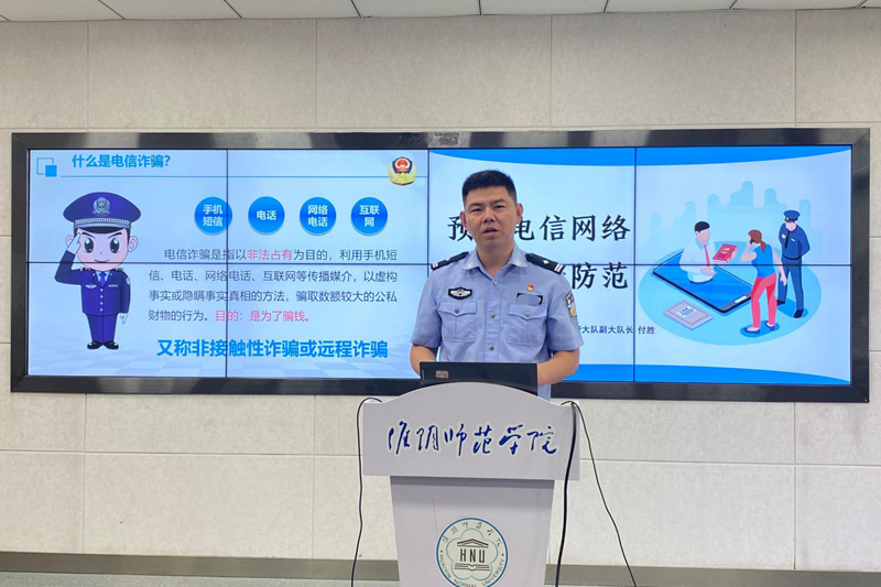 为提高自我保护意识,9月9日,学校邀请到淮安市公安局淮阴分局徐永玲为广大新生开展了《预防电信网络诈骗宣传防范》的安全教育讲座。她以身边真实案例进行剖析,分别介绍了奖学金骗局、刷单骗局、非法网贷骗局、盗用身份骗局、兼职骗局、网络客服骗局、博彩投资骗局和网恋骗局等多种电信网络诈骗形式。她提醒同学们六个“一律”,只要一谈到银行卡、中奖、“电话转接公检法”、短信链接、陌生人发来的链接以及“安全账户”等以上情况的,一律是诈骗,一定要切实有效保护好自身权益。
