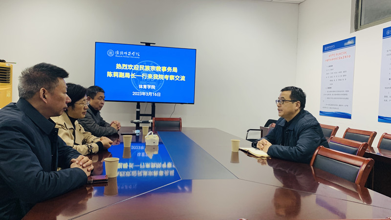 3月18日,淮安市民族宗教事务局陈莉副局长,民族处崔振友处长和陈新奇处长一行受邀来我院调研考察交流,开云足球体育(中国)官方网站院长蔺新茂教授、教师教练员代表张清江副教授在开云足球体育(中国)官方网站会议室和来宾并进行了座谈。