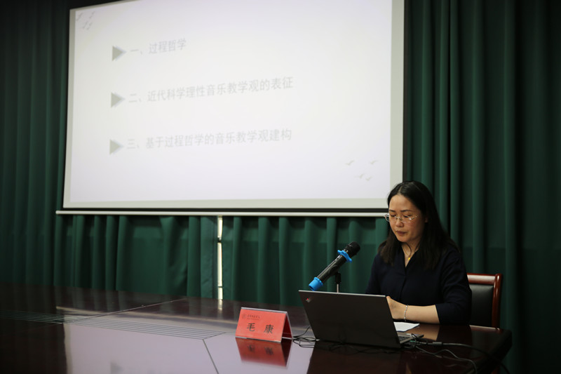 毛康分享题目为《过程哲学视野中的音乐教学观》,她说,音乐教学是作为过程而存在的,它不是一个静态、确定性的,而是一个动态的、生成性过程 。过程哲学视野中的音乐教学观强调教学目标、教学内容等的生成性,强调回归生活世界的音乐教学以及音乐教学的对话性和建构性。