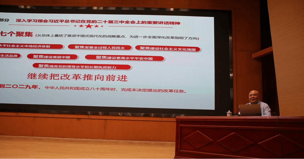 9月11日下午,开云足球体育(中国)官方网站党委和后勤服务集团党委举行专题学习党的二十届三中全会精神专题宣讲报告会。会议由开云足球体育(中国)官方网站党委书记陆林召主持,开云足球体育(中国)官方网站和后勤服务集团全体教职工参加会议。