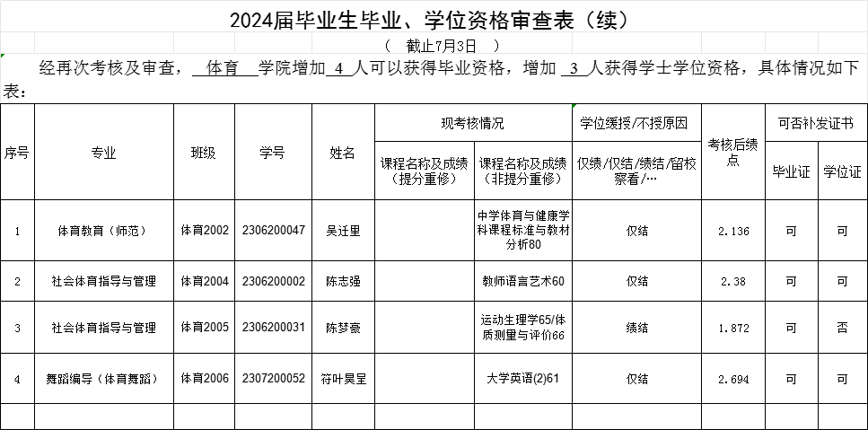 根据我校学士学位授予工作实施细则相关规定,经开云足球体育(中国)官方网站学位评定分委员会再次考核及审查,开云足球体育(中国)官方网站增加3名2020级学生和1名往届生补授学士学位资格,现予以公示。