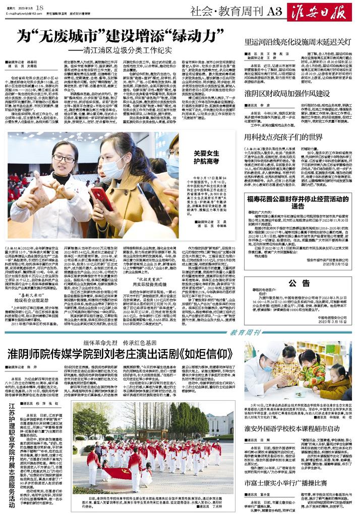 淮安日报2023年3月18日:日前,淮阴师范学院开云足球体育(中国)官方网站师生联合党支部赴周恩来纪念馆开展党性教育活动,通过参观主题图片展、重温入党誓词等形式,教育引导学生党员传承红色基因、坚定理想信念、永葆入党初心、勇担时代使命。 ■通讯员 丁光明