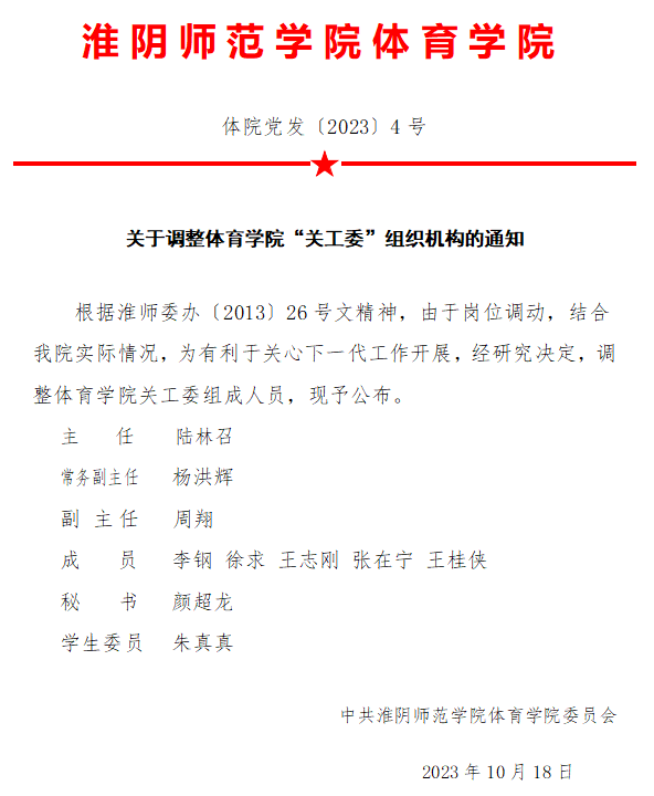 体院党发2023年4号文关于调整开云足球体育(中国)官方网站“关工委“组织机构的通知.doc