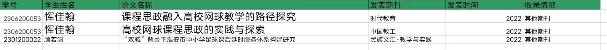 学生发表学术论文情况(大创)